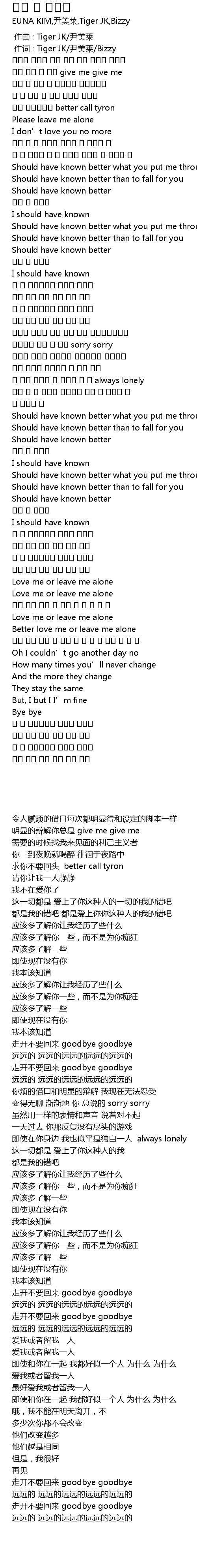 | [00:01.00] | 作词 : Tiger JK/尹美莱/Bizzy |