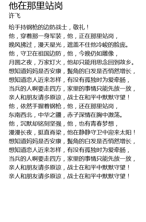 | [01:00.890] | tā, shǒu wèi zài zǔ guó biān fáng, tā, jīn wǎn réng rú diāo xiàng, |