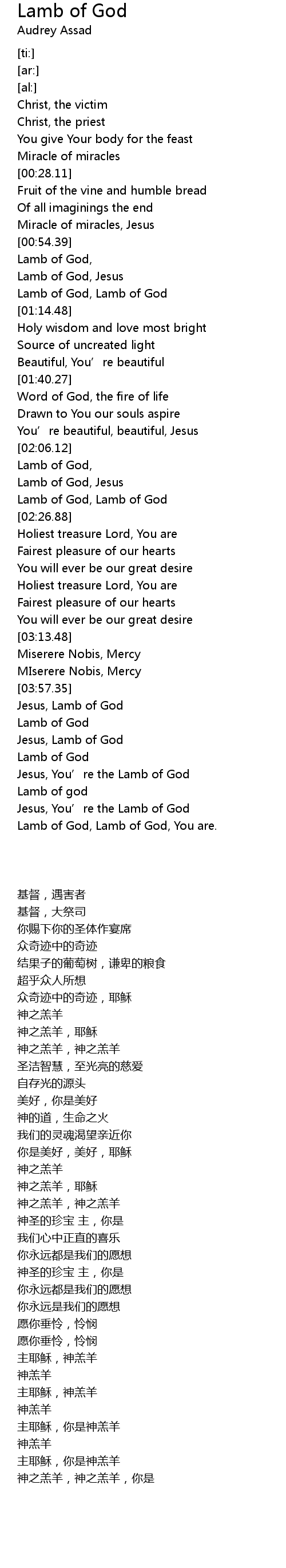 | [02:17.97] | Lamb of God, Lamb of God |