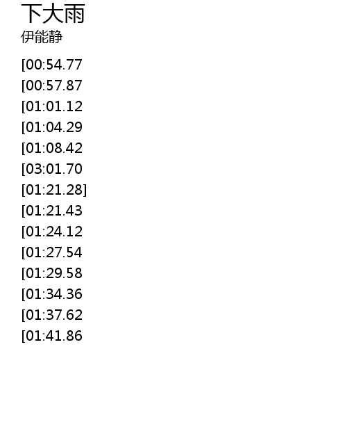 | [02:41.55][00:54.77][00:28.40] | 哗啦啦啦啦啦 |