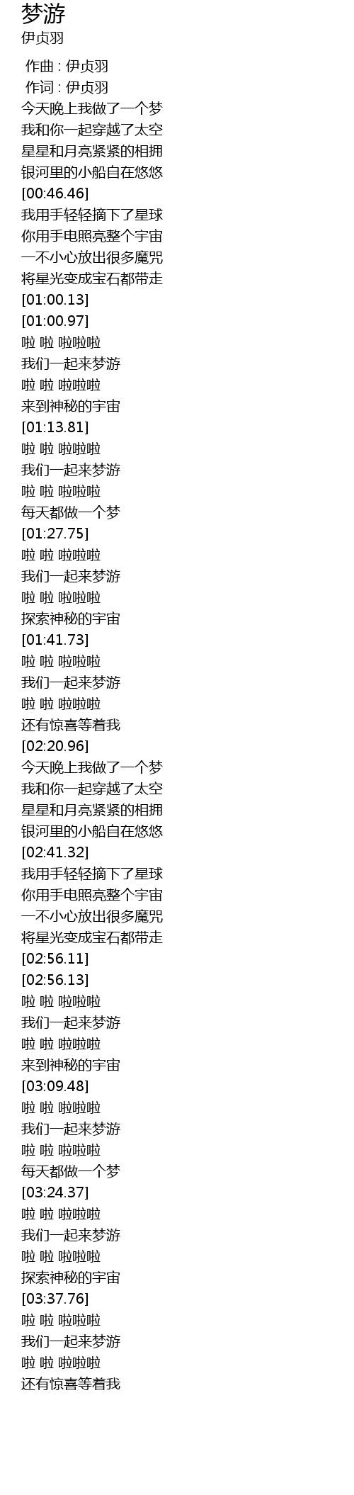 | [01:46.43] | wǒ men yì qǐ lái mèng yóu |