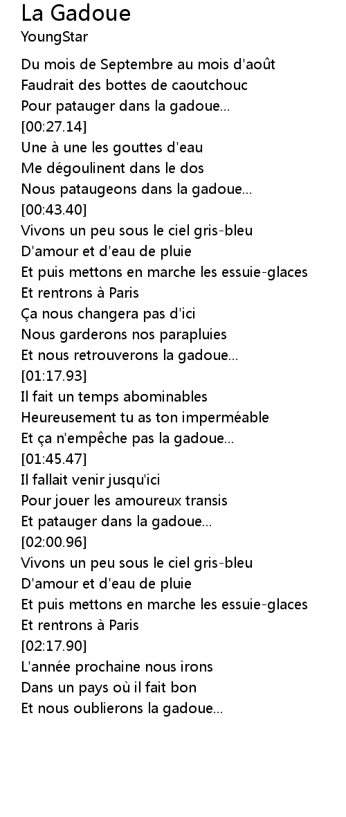 | [02:26.00] | Et nous oublierons la gadoue... |