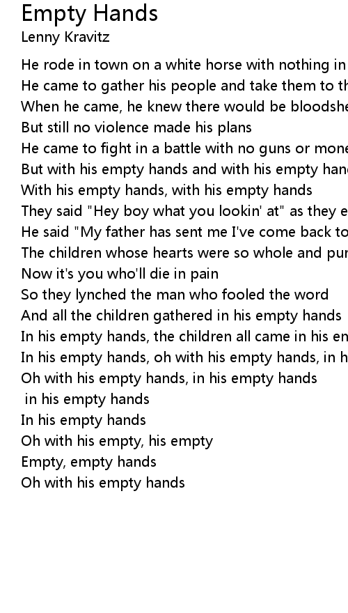 In his empty hands, oh with his empty hands, in his empty hands |