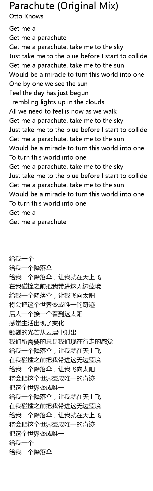 Get me a parachute, take me to the sky |