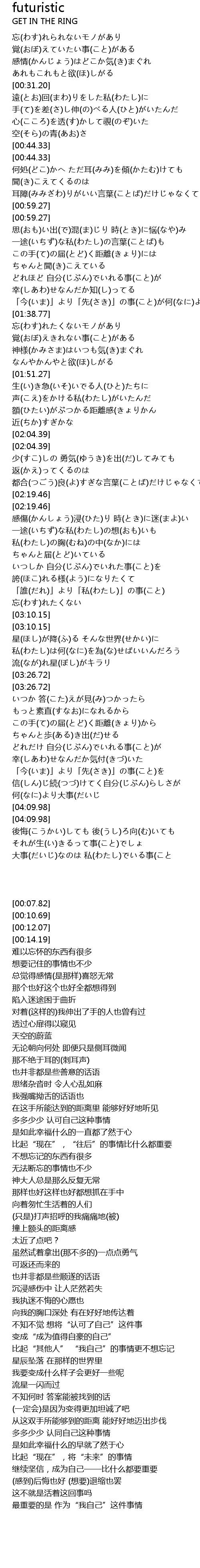 | [03:31.42] | もっと素直(すなお)になれるから |