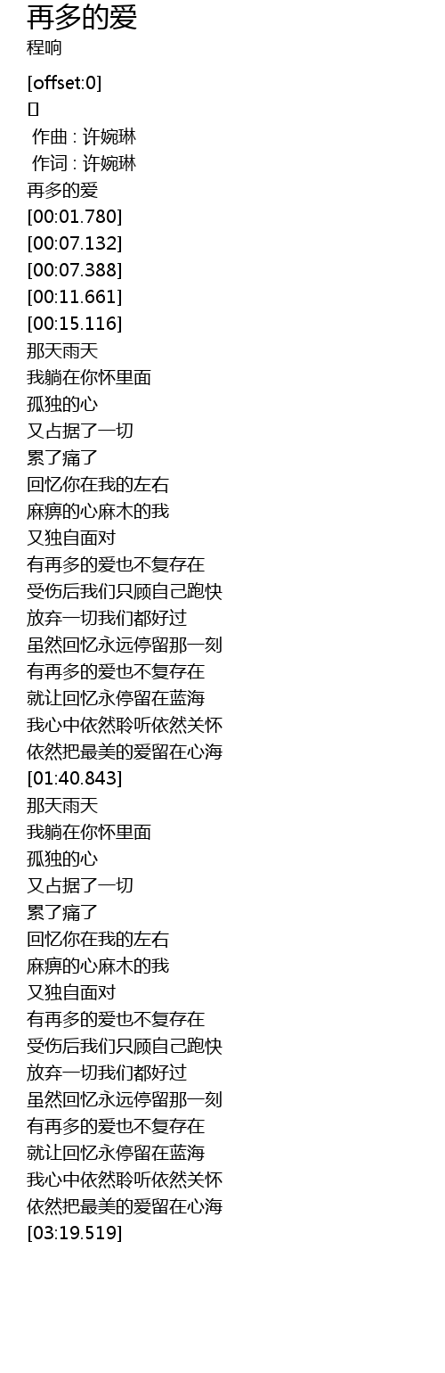 | [01:18.639] | yǒu zài duō de ài yě bù fù cún zài |