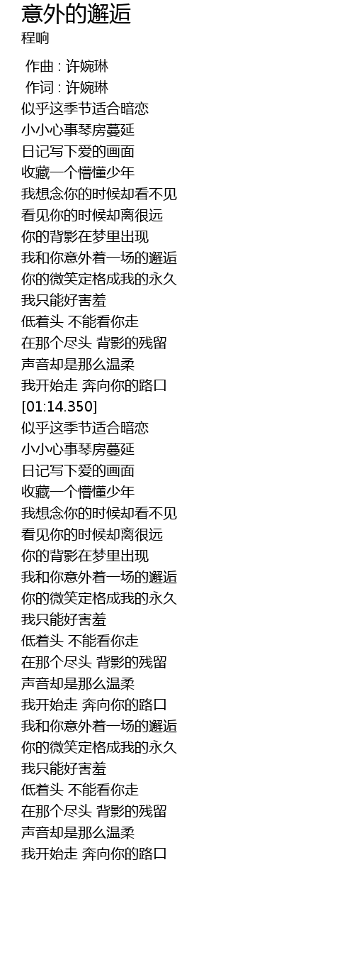 | [00:45.340] | 我和你意外着一场的邂逅 |