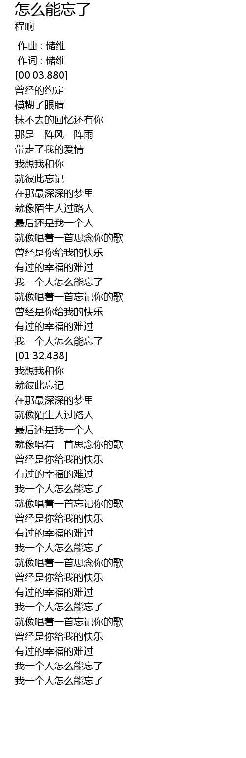 | [03:18.101] | wǒ yí ge rén zěn me néng wàng le |