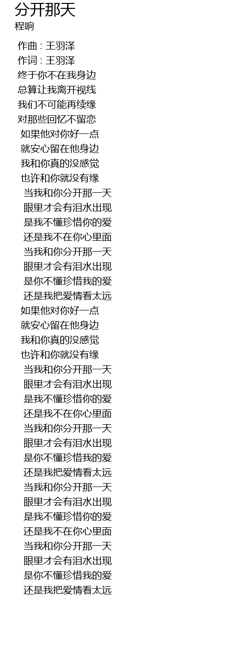 | [02:34.500] | dang wo he ni fen kai na yi tian |