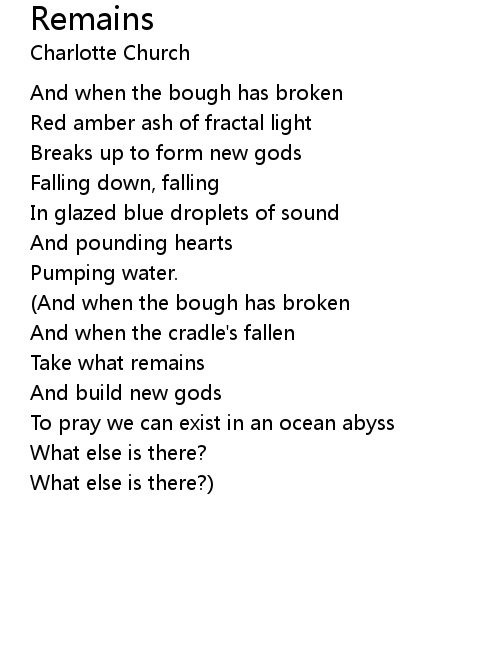 | (And when the bough has broken | |