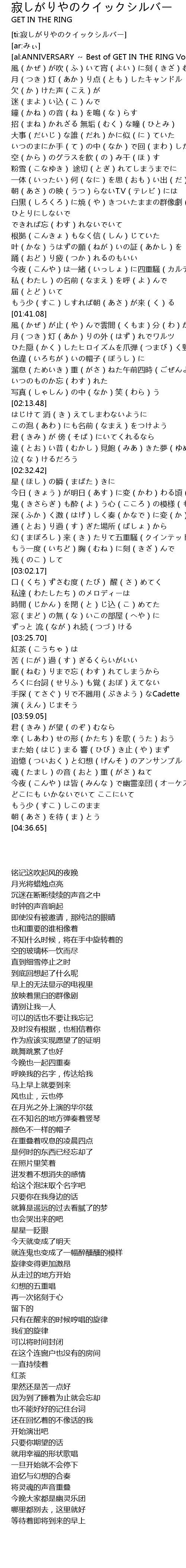 | [02:51.01] | 幻(まぼろし)来(き)たりて五重騒(クインテット) |