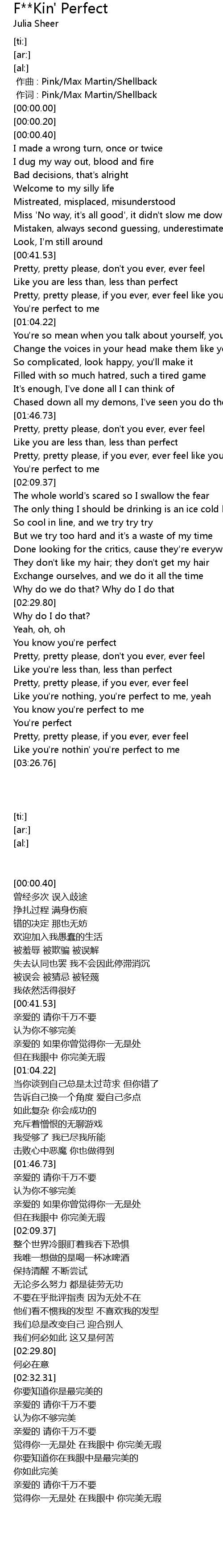 | [00:00.00] | 作曲 : Pink/Max Martin/Shellback |