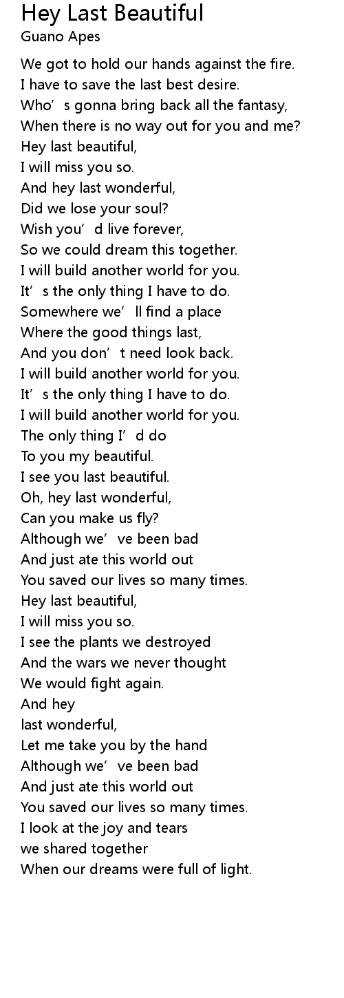 | Hey last beautiful, | |