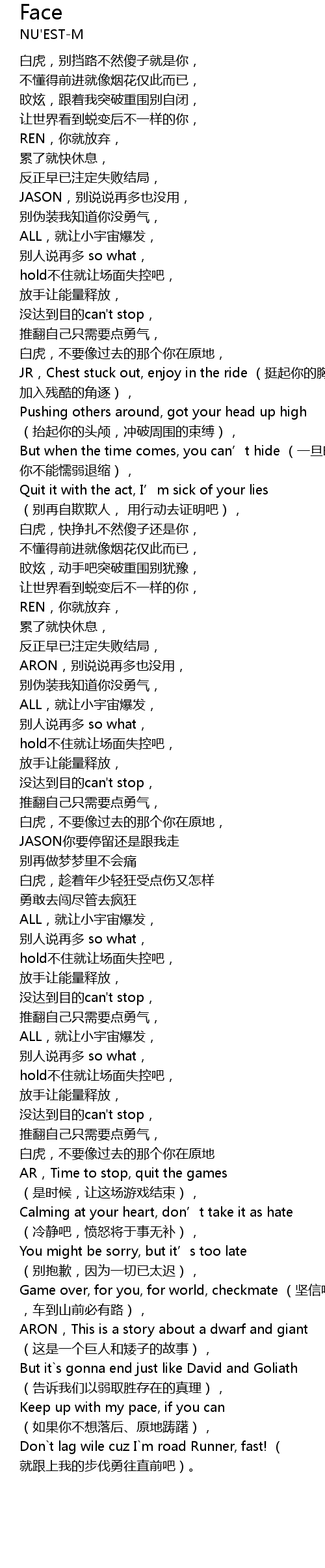| [01:02:000] | JR,Chest stuck out, enjoy in the ride (挺起你的胸膛, 加入残酷的角逐), |