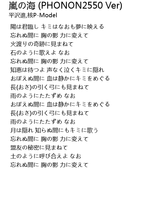 | [02:55.029] | おぼえぬ間に 血は静かにキミをめぐる |
