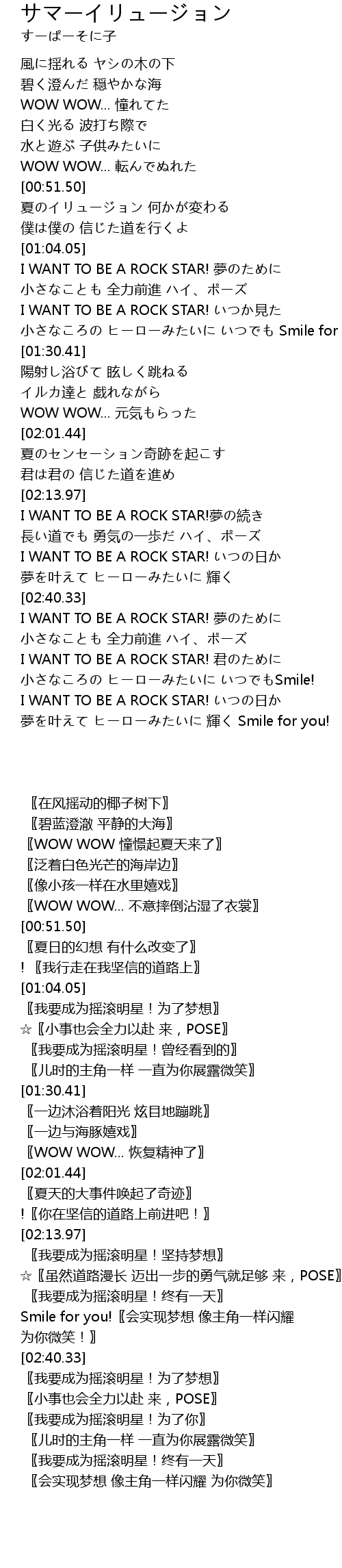 | [00:51.71] | 夏のイリュージョン 何かが変わる |