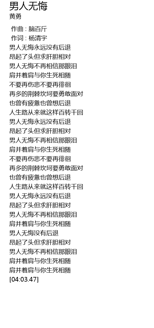 | [03:30.86] | 男人无悔不再相信那眼泪 |