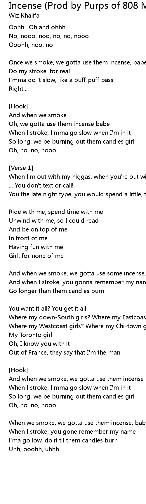 And when we smoke, we gotta use some incense, babe