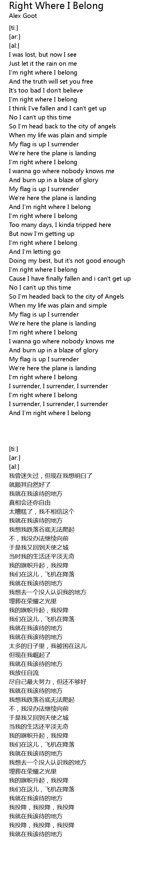 And I'm right where I belong |