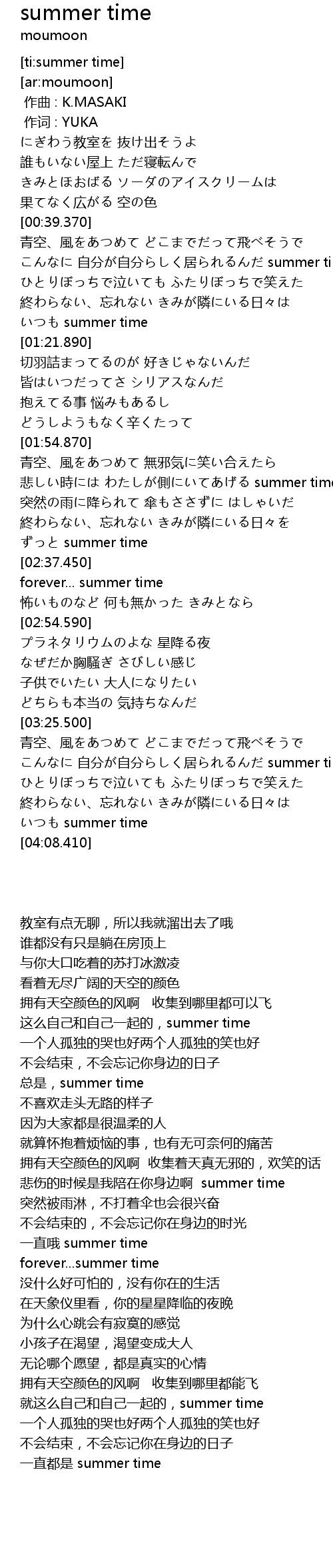 | [00:49.410] | zì fēn zì fēn jū summer time |