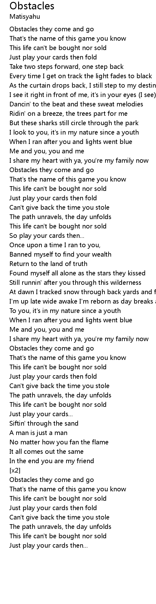 | Obstacles they come and go | |