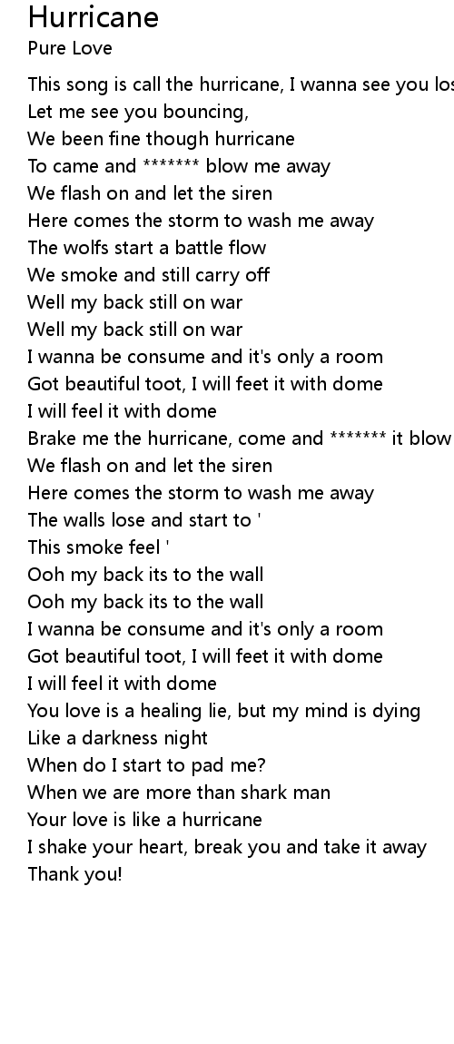 This song is call the hurricane, I wanna see you lose your ******* mind |