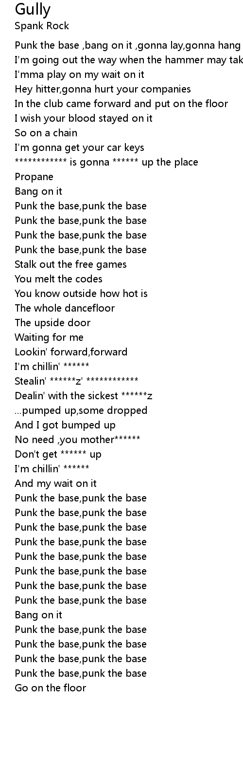 Punk the base ,bang on it ,gonna lay,gonna hang |