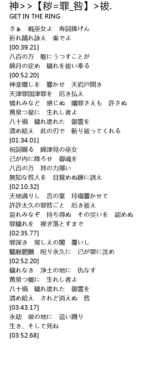 | [02:18.81] | 許許太久の罪咎ごと 厄き祓え |