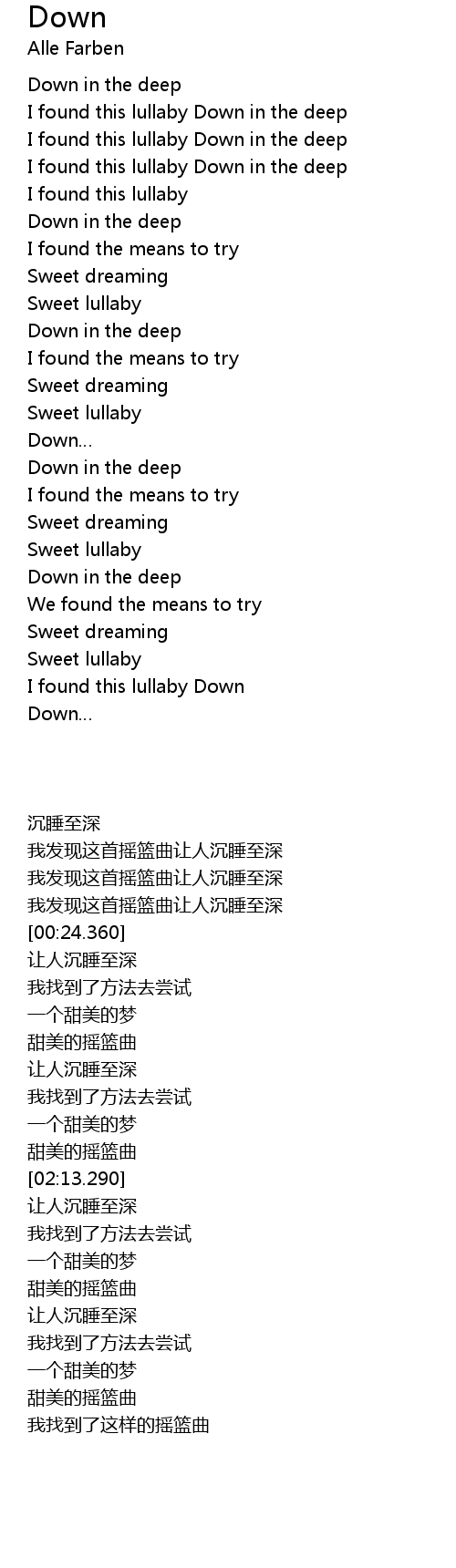 | [03:28.390] | I found this lullaby Down |