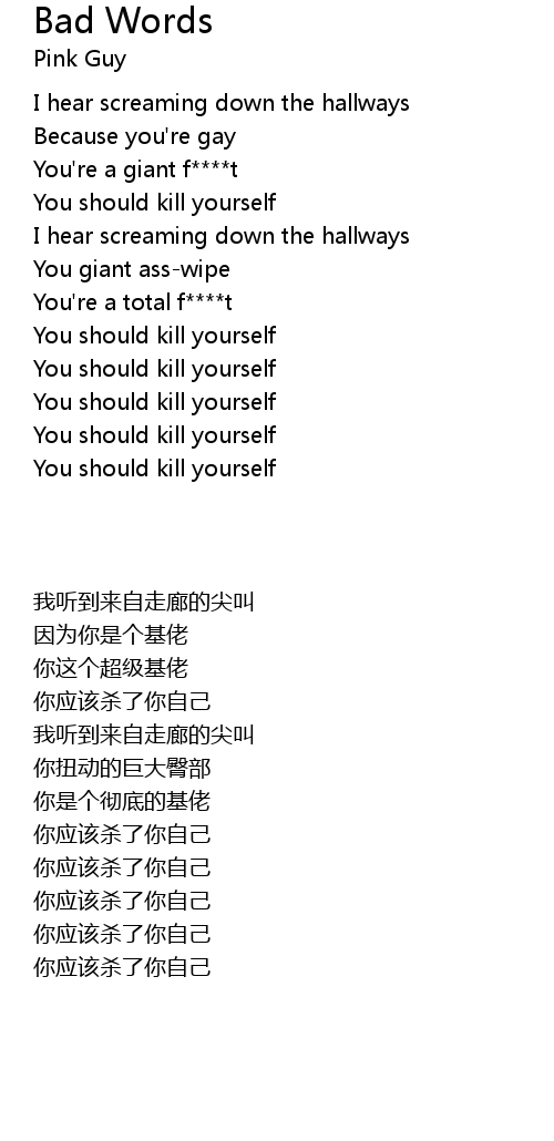 | [00:23.02] | You should kill yourself |