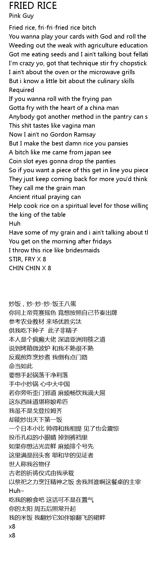 | [00:00.00] | Fried rice, fri-fri-fried rice bitch |