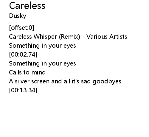 | [00:00.31] | Careless Whisper (Remix) - Various Artists |