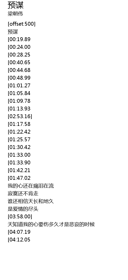| [03:19.50][01:42.21] | 来不及看清楚你的预谋 |