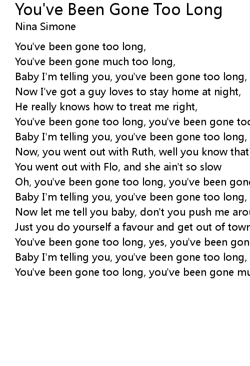 You've been gone too long, you've been gone too long, |