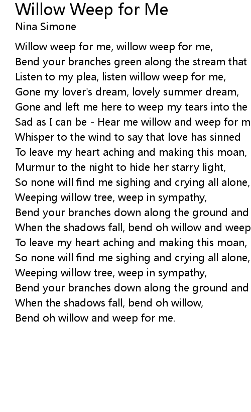 Listen to my plea, listen willow weep for me, |