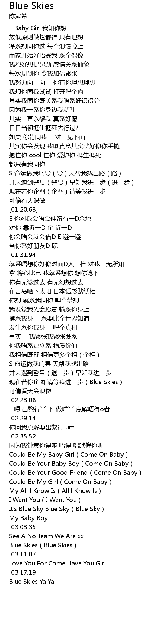 | [03:17.70] | Blue Skies Ya Ya |
