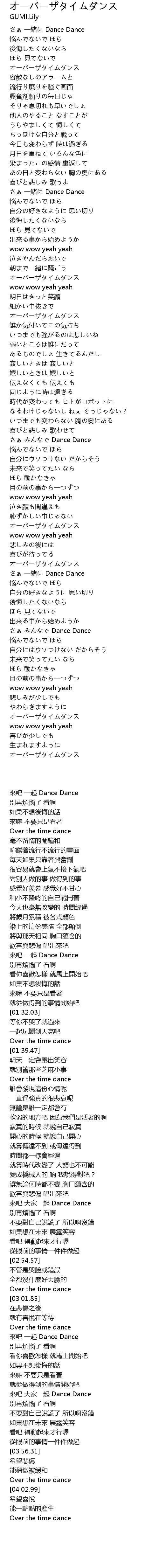| [01:37.18] | オーバーザタイムダンス |
