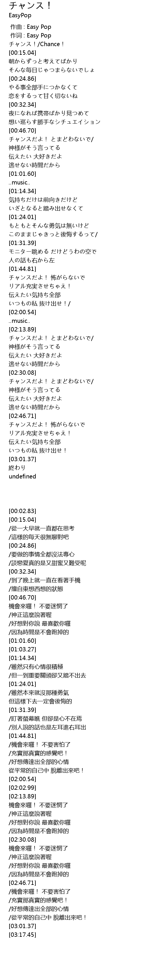| [00:02.83] | チャンス!/Chance! |