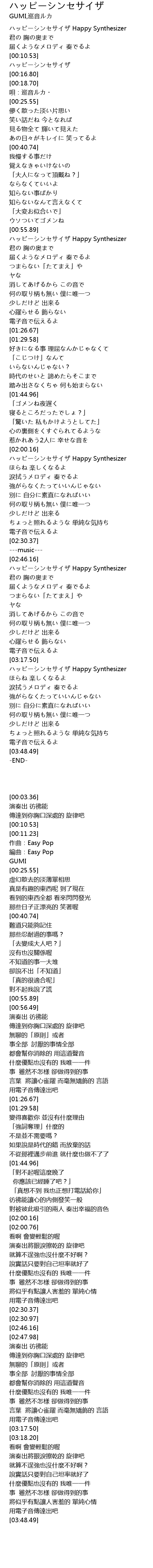 | [02:00.76] | ハッピーシンセサイザ Happy Synthesizer |