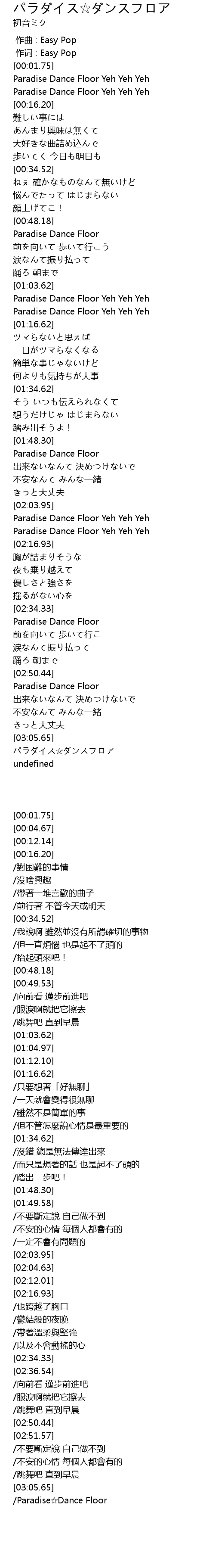 | [02:36.54] | Paradise Dance Floor |