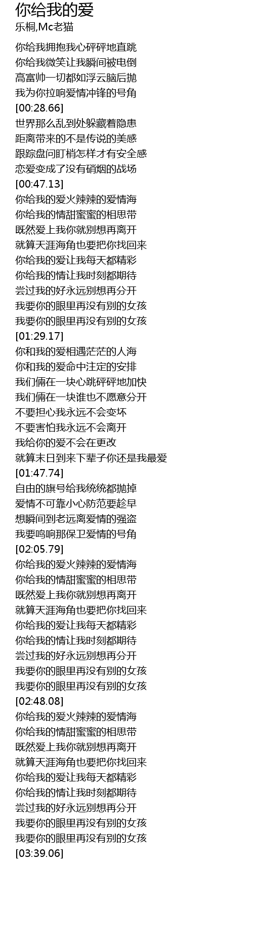 | [02:56.43] | 你给我的爱火辣辣的爱情海 |