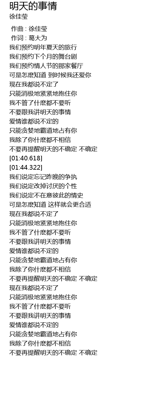 | [01:31.310] | 不要再提醒明天的不确定 不确定 |
