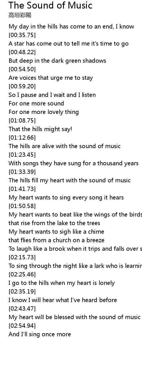 | [01:35.52] | The hills fill my heart with the sound of music |