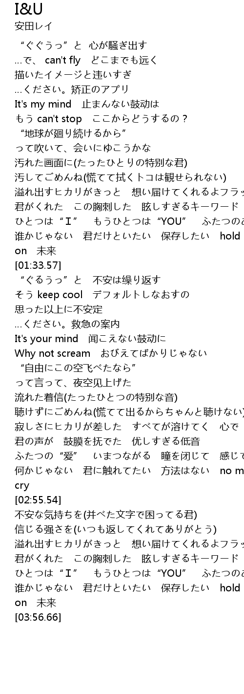 | [03:48.11] | 谁かじゃない 君だけといたい 保存したい hold on 未来 |