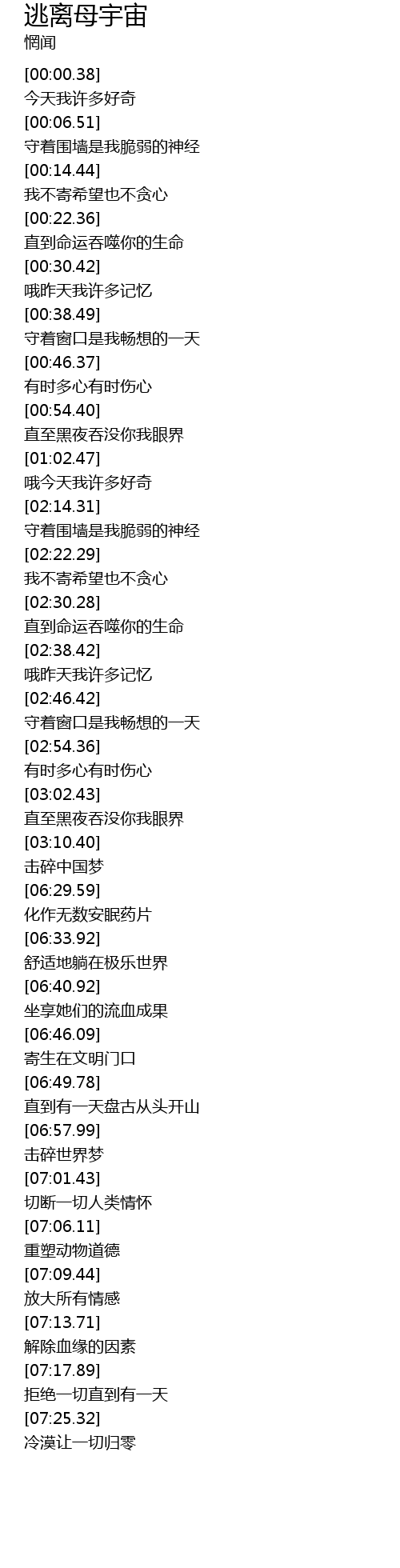 | [02:33.03] | 直到命运吞噬你的生命 |