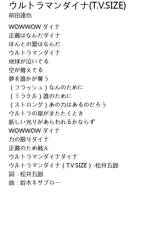| [01:16.517] | ウルトラマンダイナ(T.V.SIZE)-松井五郎 |