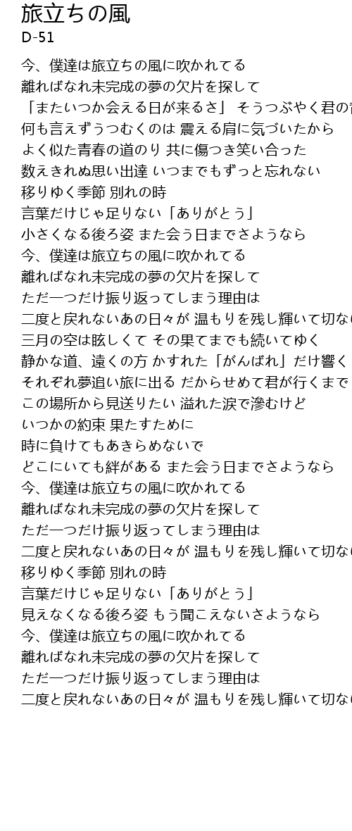 | それぞれ夢追い旅に出る だからせめて君が行くまで | |