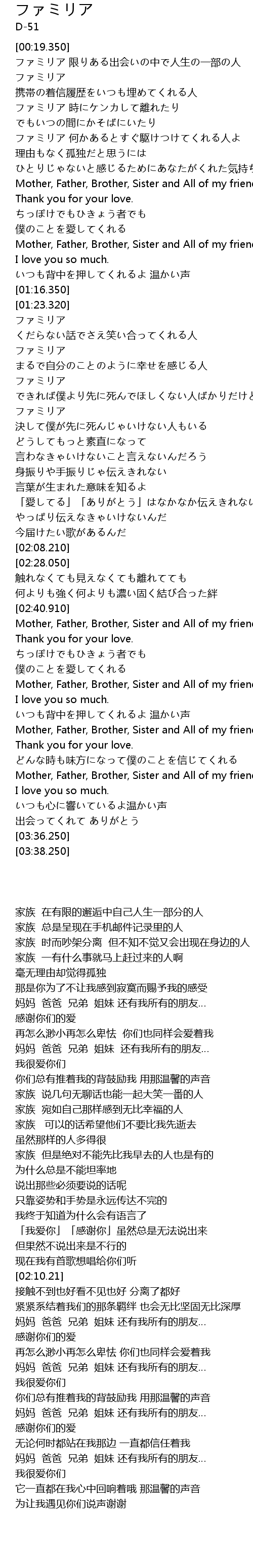 | [00:21.350] | ファミリア 限りある出会いの中で人生の一部の人 |