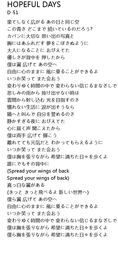 | 僕は胸を張りながら 希望に満ちた日々を歩くよ | |