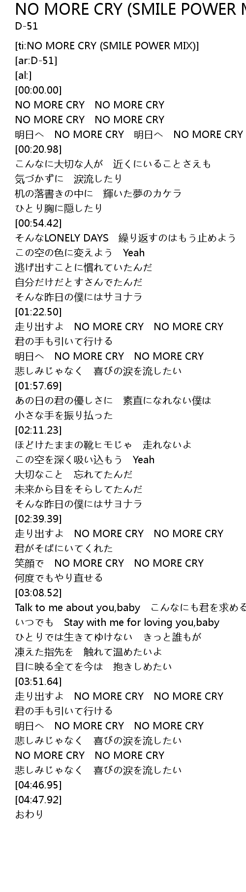 | [ti:NO MORE CRY (SMILE POWER MIX)] | |